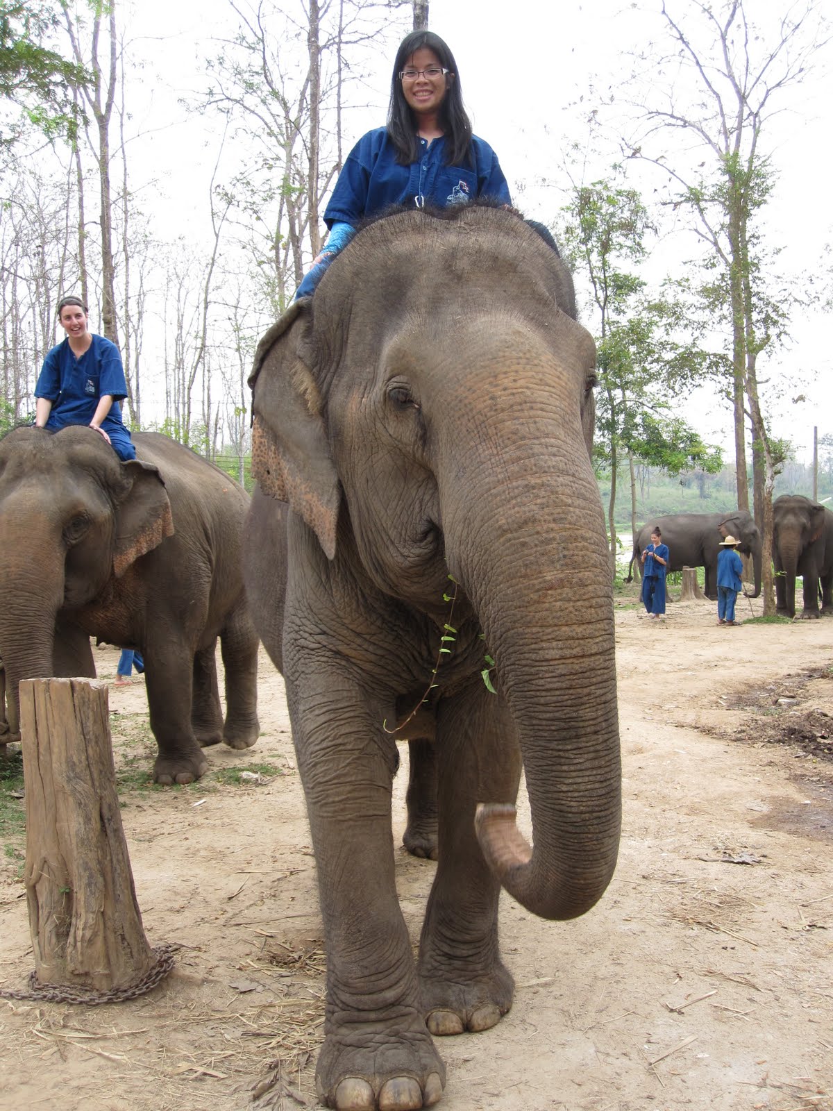 This has definitely been the best day in Asia so far! It was absolutely amazing! I had so much fun. We went to the Thai Elephant Conservation Centre in Lampang. I had my very own elephant to ride on and a mahout to help me out. My elephant's name is Pang Yom and she's 61 years old. The oldest in the group of elephants. She's so nice. She's the leader of the group so I was always first in line and she's so obedient and calm.